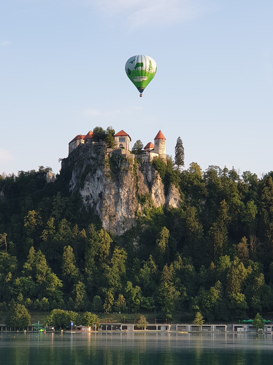 어디선가 열기구가 하나 올라오는데, 블레드성과 넘 잘 어울린다.