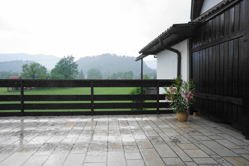 우산은 가져갔지만...우박이 섞인 소나기에 신발과 바지가 거의 젖었다.